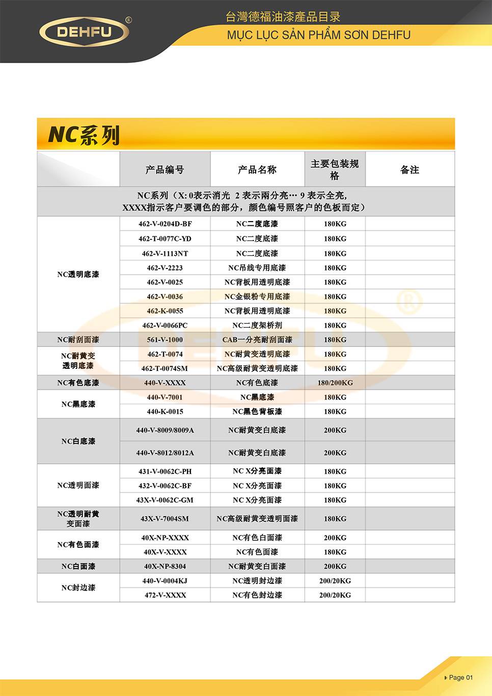 – NC產品系列有:NC底漆,NC面漆,NC有色底/面漆,NC稀釋劑。